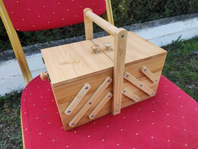 Niciarka drewniana organizer na nici Igły kuferek do szycia Skrzynka bambusowa z drewna RelaxDays . Nowa. Drewniany ...